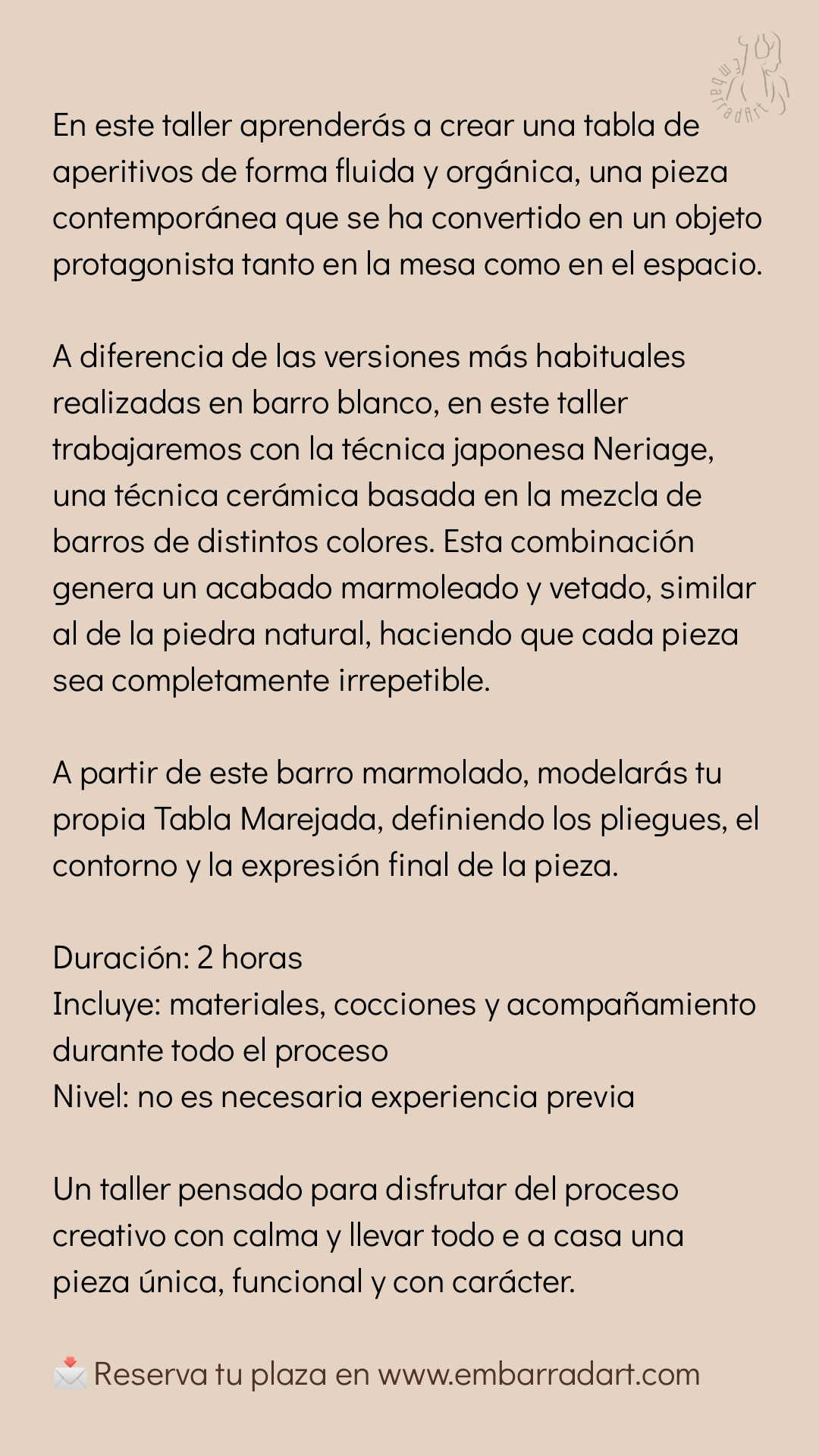 Un taller pensado para disfrutar del proceso creativo con calma y llevarte a casa una pieza única, funcional y con carácter.